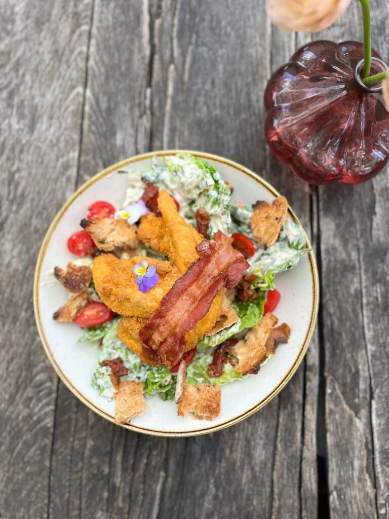 SAŁATKA ALA CESAR Z KURCZAKIEM W DELIKATNEJ PANIERCE